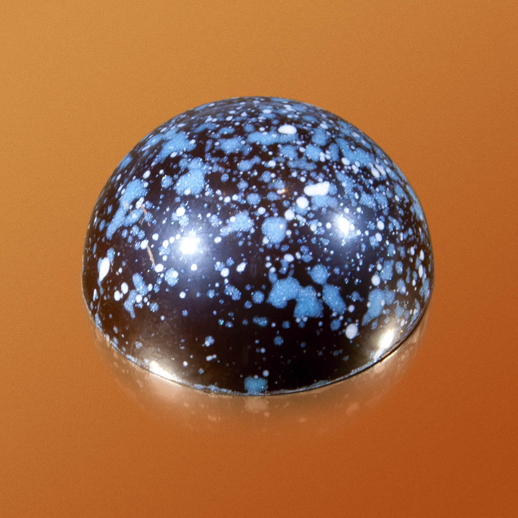 A dark chocolate dome, filled with a luscious ganache - made with single-origin, 70% dark chocolate.