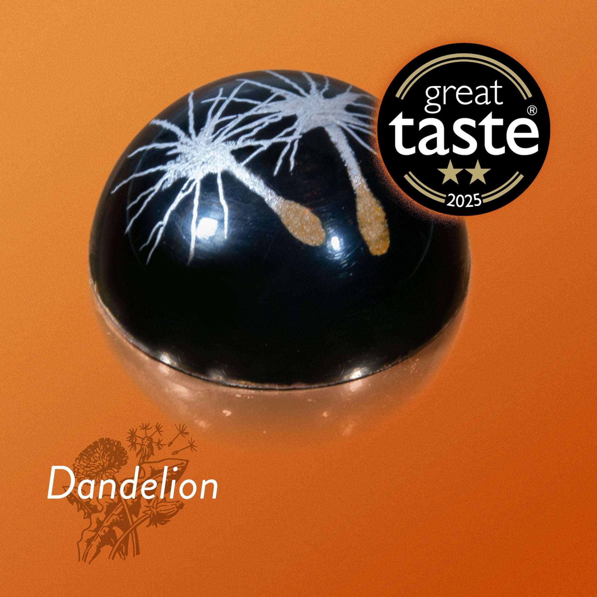 Dark chocolate and roasted dandelion combine to create an intensely rich ganache in a dark chocolate shell.